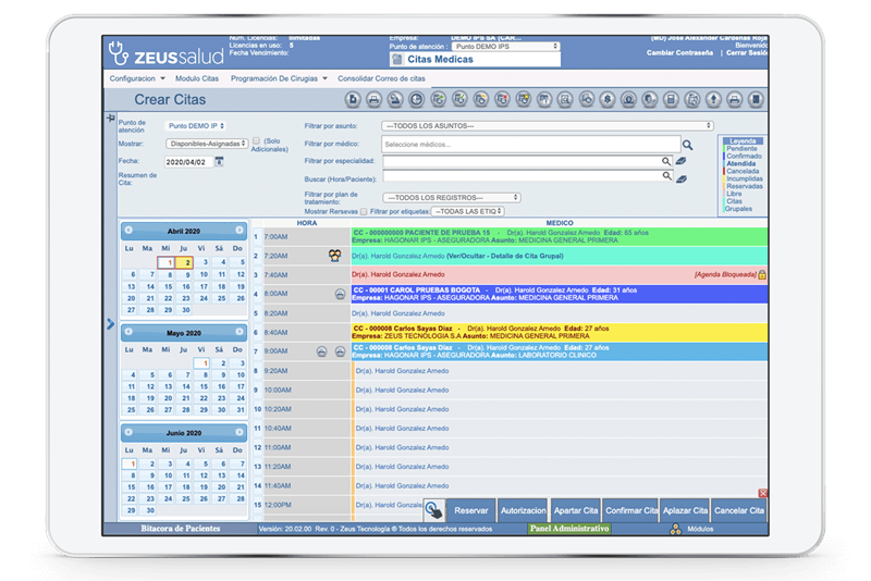 Zeus® Salud es un sistema integrado y especialmente diseñado para administrar consultorios, centros médicos, clínicas y hospitales de todos los niveles de complejidad. Maneja de forma integrada los modelos de contratación, admisiones, facturación clínica, enfermería, paraclínicos, farmacia, caja de copagos, historias clínicas, generaciones de RIPS y mucho más.